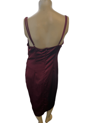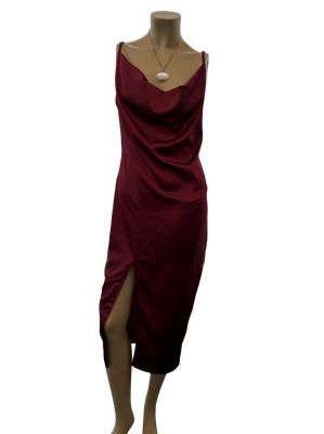 Pre-Loved Burgundy Satin Cowl Neck Slip Dress with Thigh Split - Effortlessly Sexy Evening Style!