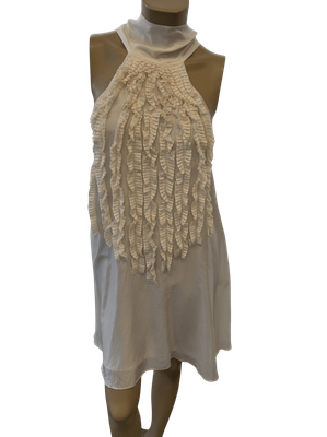 Pre-Loved Dreamy Ivory Halter Neck Mini Dress with Feather Ruffle Detail & Oversized Bow