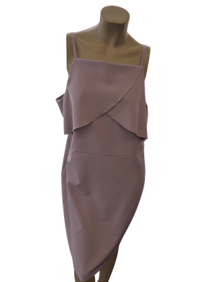A beautifully refined dress that effortlessly balances contemporary design with timeless elegance. The soft dusty pink tone and asymmetric overlay detailing make this a truly versatile and polished piece for any formal occasion.